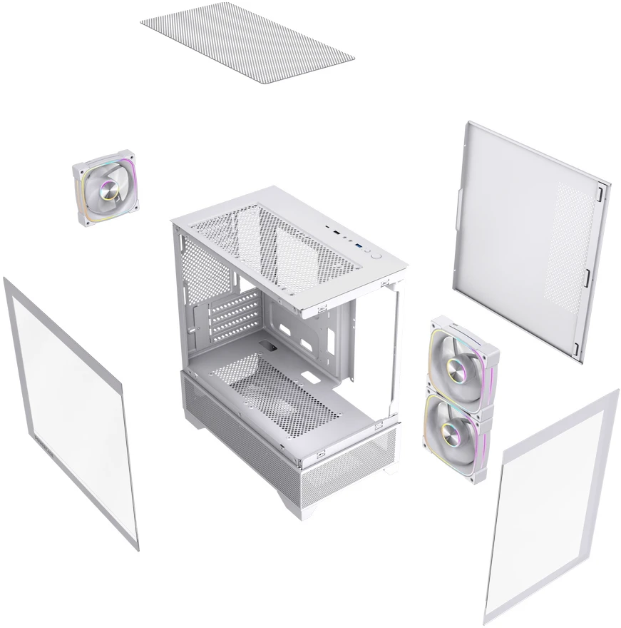 Tempered Glass, Type-C, 3x 120mm ARGB PWM Fan, белый, mATXTempered Glass, Type-C, 3x 120mm ARGB PWM Fan, белый, mATX