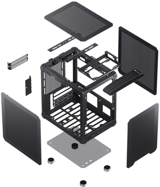 mini-ITX, CPU 175mm, VGA 225mm; USB3.0, Type-C, сбоку и спереди сетка, ручка для переноса, блок ATX, черный