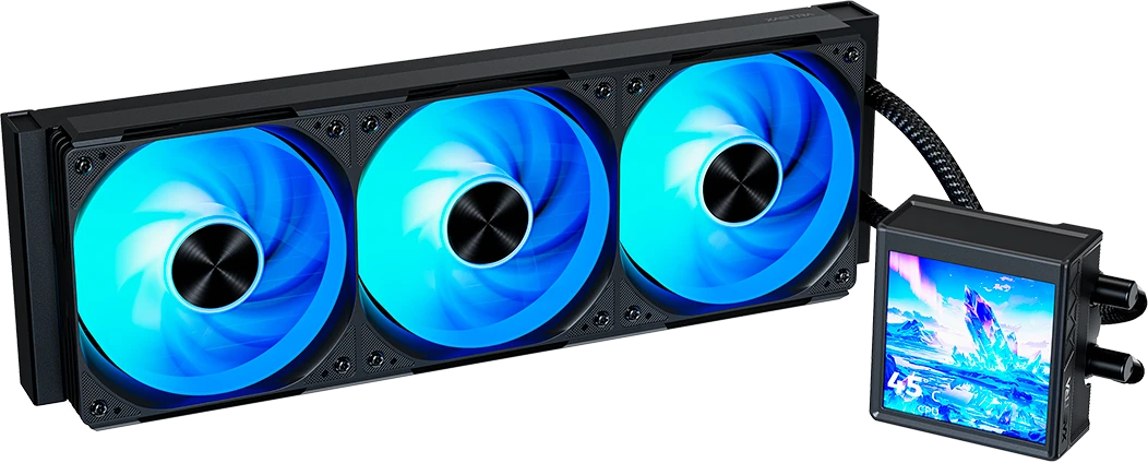 315Вт, 3x120мм, 800-3000 об/мин, 35дБ, ARGB, 4" ЖК дисплей, LGA1851/1700/1200/115X/AM5/AM4, цвет черный
