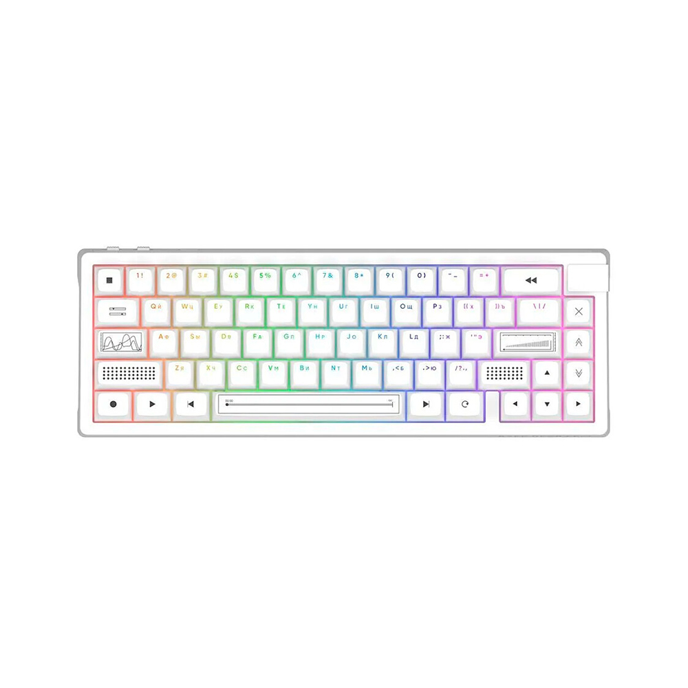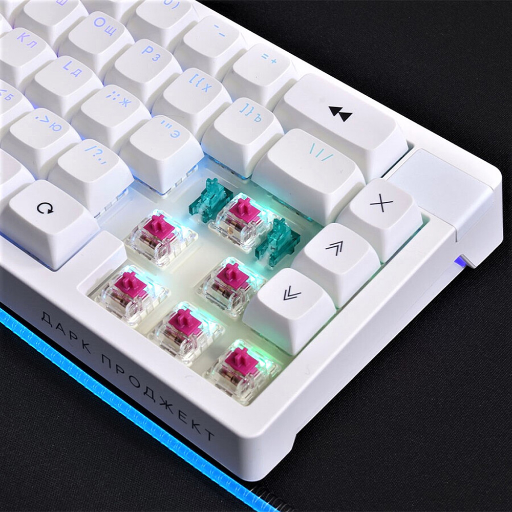 механическая, 65 клавиши, без цифрового блока, беспроводная, Bluetooth, 2.4hz, USB, подсветка RGB, материал корпуса пластик PBT, свитчи g3ms Zircon, Формат клавиатуры 65%, Дарк Проджект